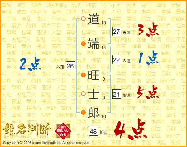 道端旺士郎さんの総運は48画の4点!