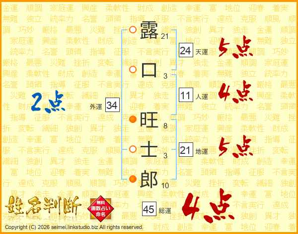 露口旺士郎さんの総運は45画の4点!