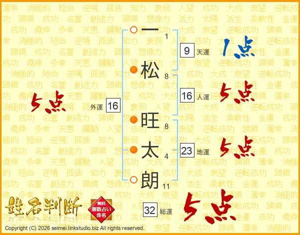 一松旺太朗さんの総運は32画の5点!