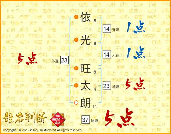 依光旺太朗さんの総運は37画の5点!