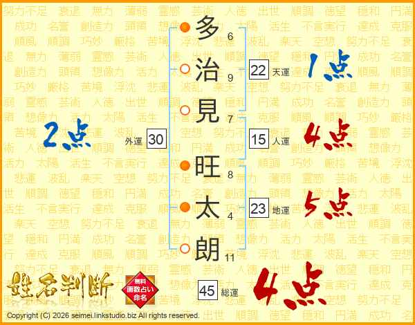 多治見旺太朗さんの総運は45画の4点!