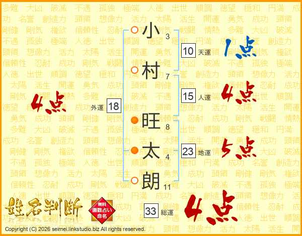 小村旺太朗さんの総運は33画の4点!