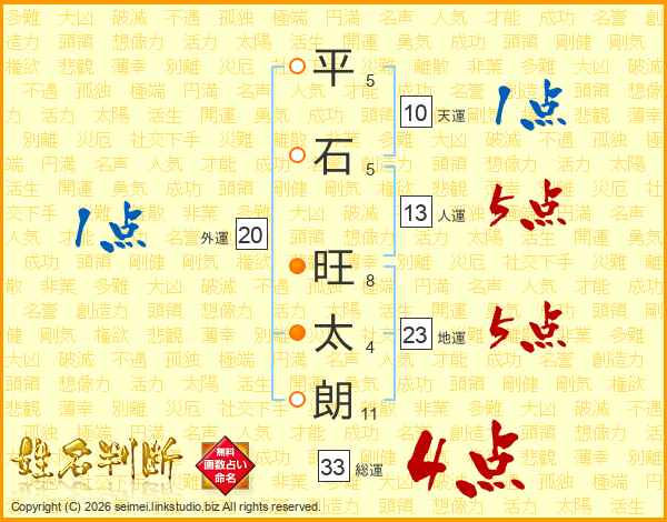 平石旺太朗さんの総運は33画の4点!