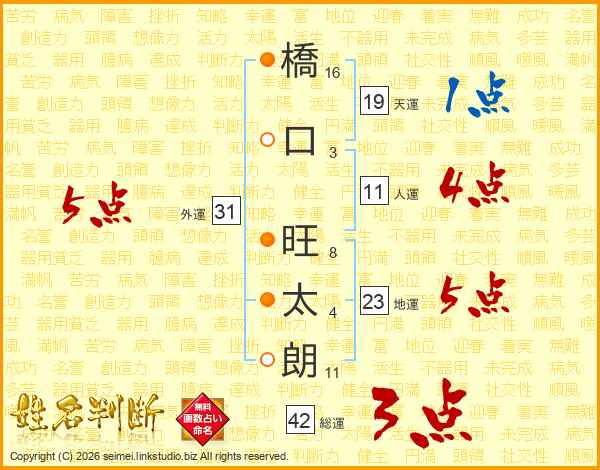 橋口旺太朗さんの人運は11画の4点!