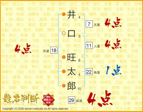 井口旺太郎さんの総運は29画の4点!