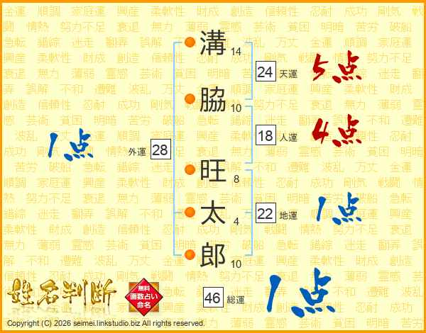溝脇旺太郎さんの総運は46画の1点!