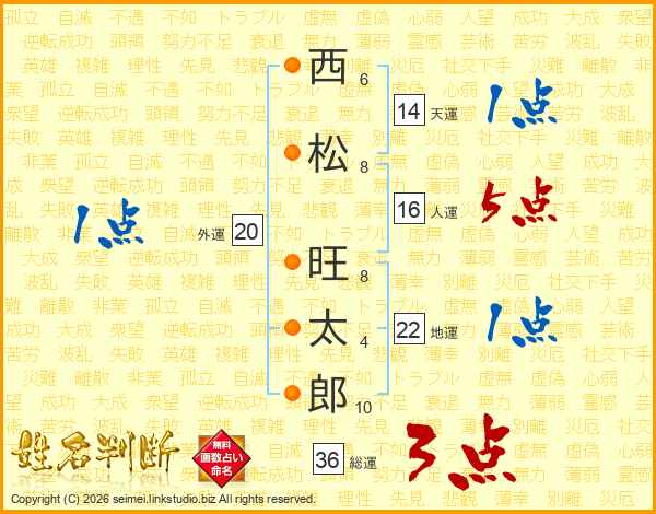 西松旺太郎さんの総運は36画の3点!