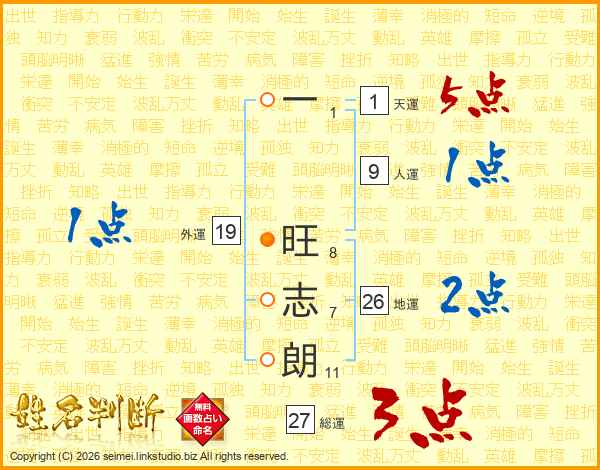 一旺志朗さんの地運は26画の2点!