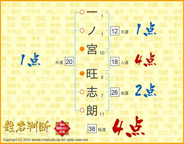 一ノ宮旺志朗さんの総運は38画の4点!