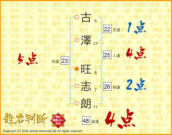古澤旺志朗さんの総運は48画の4点!
