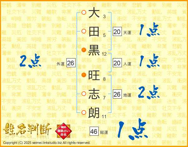 大田黒旺志朗さんの総運は46画の1点!