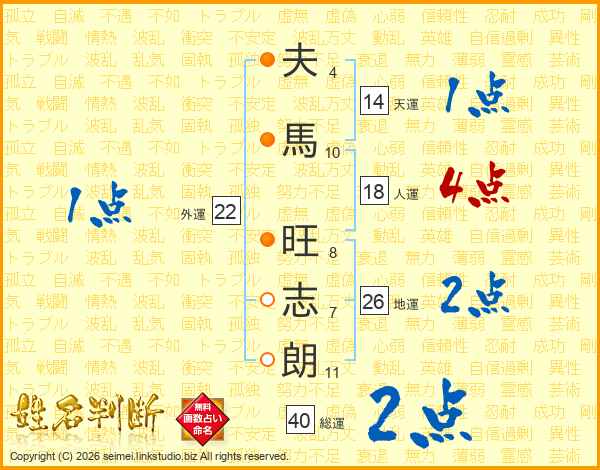 夫馬旺志朗さんの天運は14画の1点!