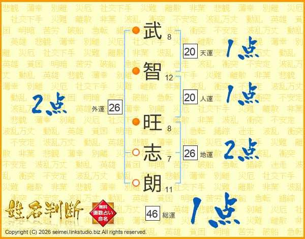 武智旺志朗さんの地運は26画の2点!