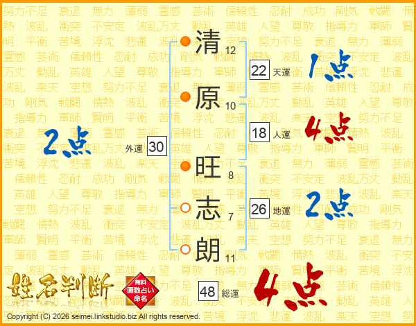 清原旺志朗さんの総運は48画の4点!