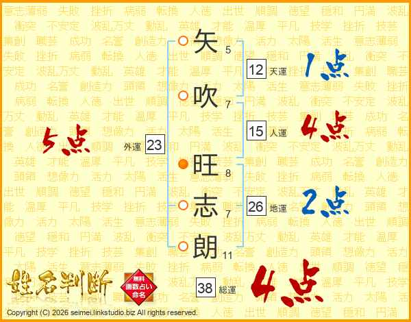 矢吹旺志朗さんの総運は38画の4点!