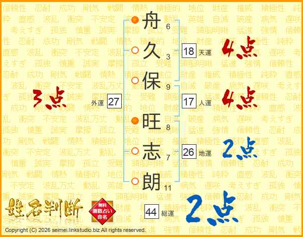 舟久保旺志朗さんの地運は26画の2点!