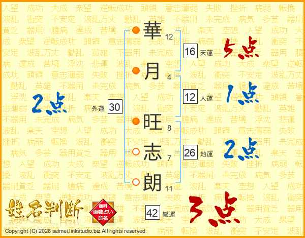 華月旺志朗さんの総運は42画の3点!
