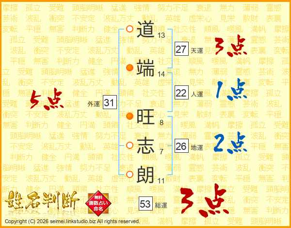 道端旺志朗さんの地運は26画の2点!