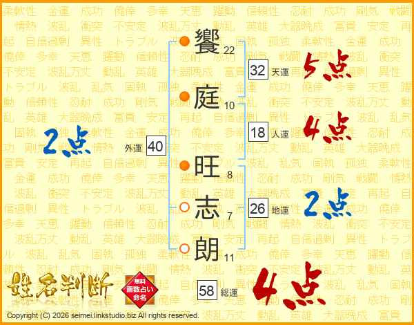 饗庭旺志朗さんの総運は58画の4点!