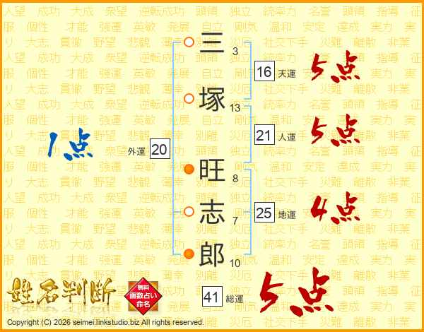三塚旺志郎さんの人運は21画の5点!
