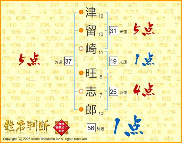 津留崎旺志郎さんの外運は37画の5点!