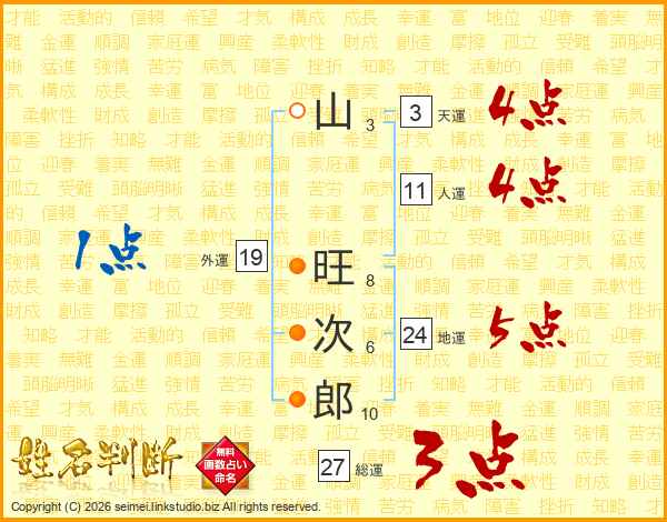 山旺次郎さんの総運は27画の3点!