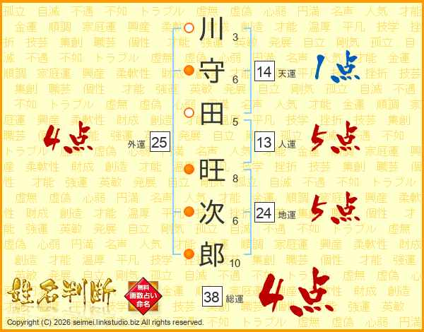 川守田旺次郎さんの総運は38画の4点!
