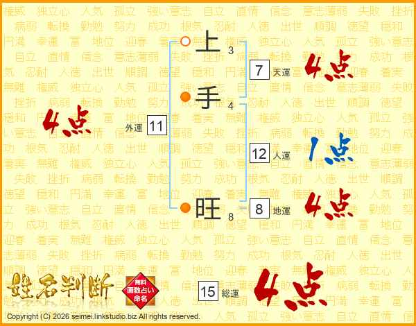 上手旺さんの総運は15画の4点!