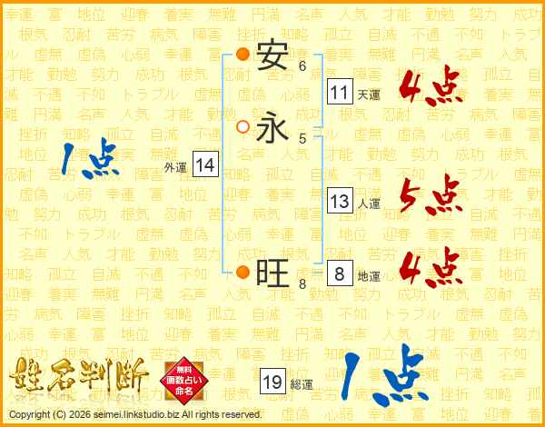 安永旺さんの総運は19画の1点!