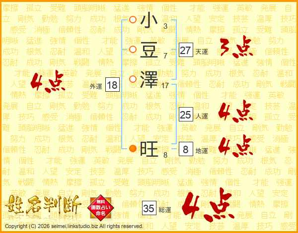 小(3画)豆(7画)澤(17画) 旺(8画)