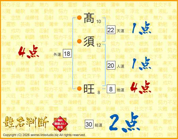 髙須旺さんの天運は22画の1点!