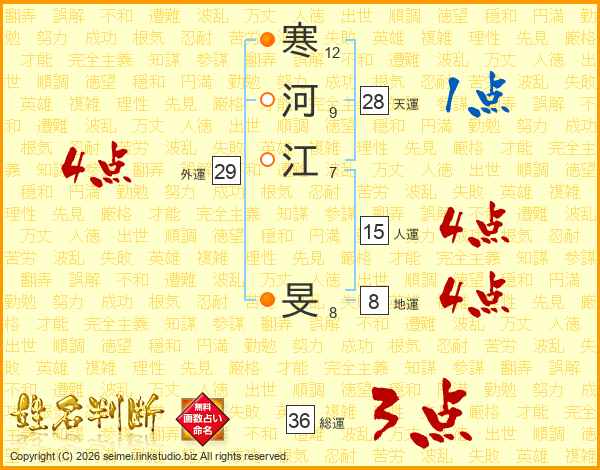 寒河江旻さんの総運は36画の3点!