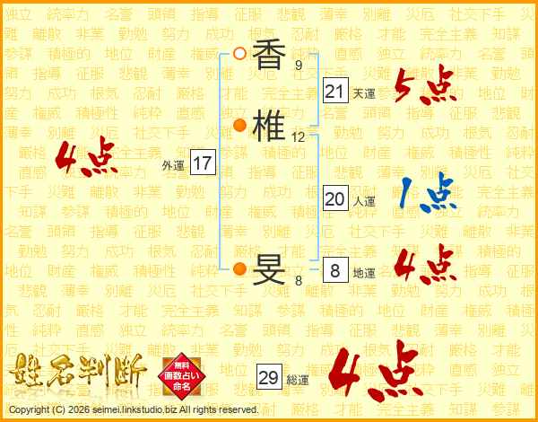 香椎旻さんの総運は29画の4点!