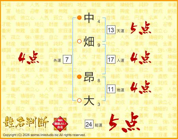 中畑昂大さんの総運は24画の5点!