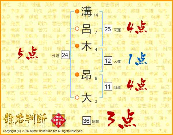 溝呂木昂大さんの天運は25画の4点!