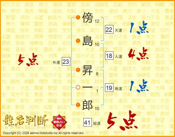 傍(12画)島(10画) 昇(8画)一(1画)郎(10画)