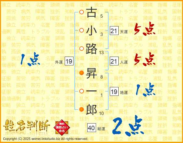 古小路昇一郎さんの総運は40画の2点!
