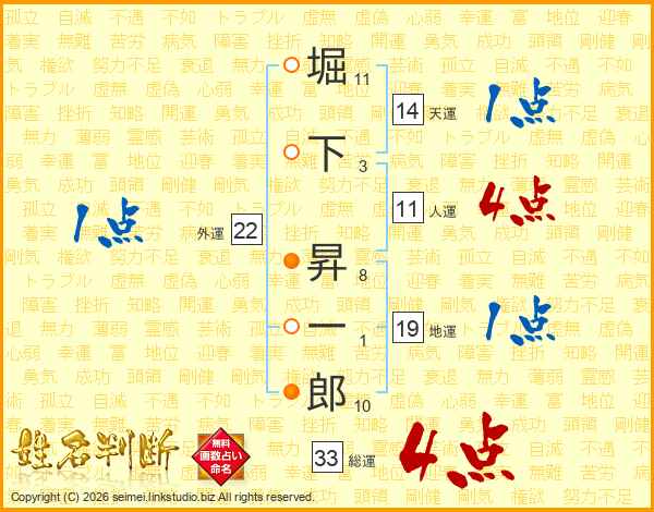 堀下昇一郎さんの総運は33画の4点!