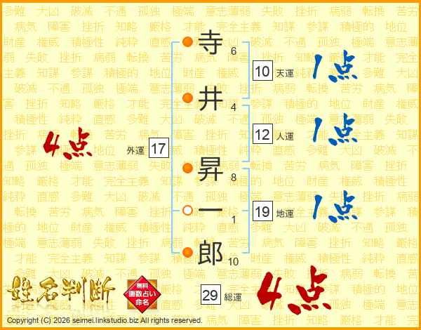 寺井昇一郎さんの総運は29画の4点!