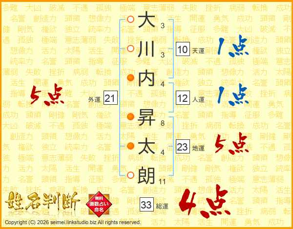 大川内昇太朗さんの総運は33画の4点!