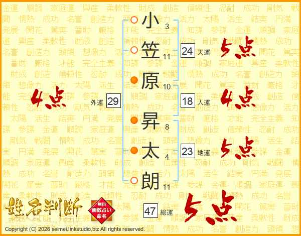 小笠原昇太朗さんの総運は47画の5点!
