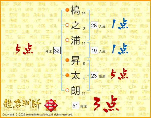 槝之浦昇太朗さんの外運は32画の5点!