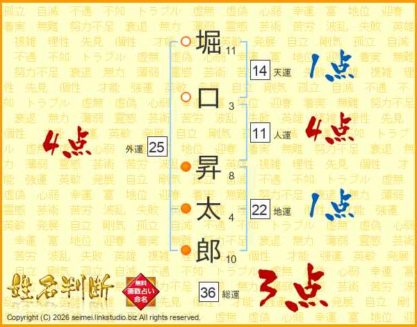 堀(11画)口(3画) 昇(8画)太(4画)郎(10画)