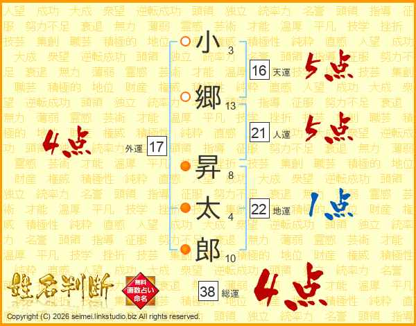 小郷昇太郎さんの総運は38画の4点!