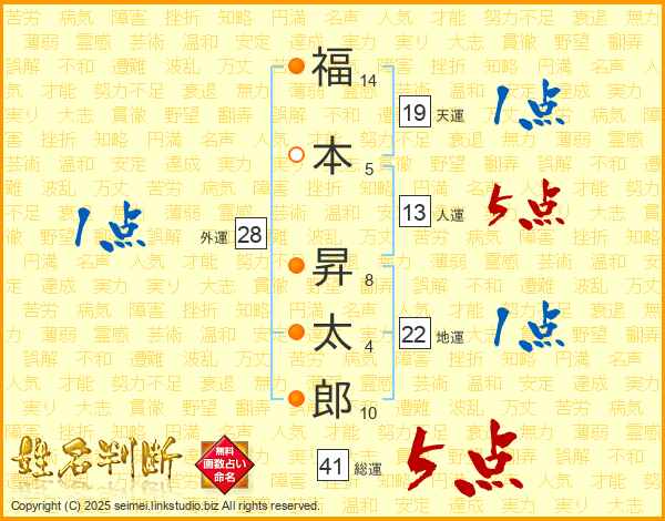 福本昇太郎さんの総運は41画の5点!