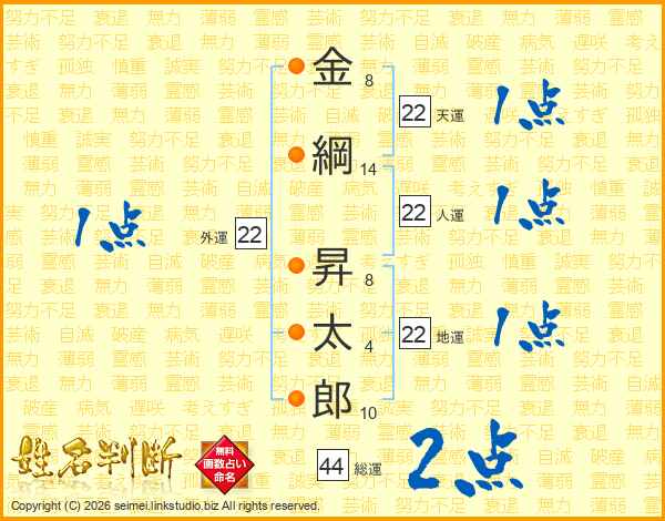 金綱昇太郎さんの総運は44画の2点!