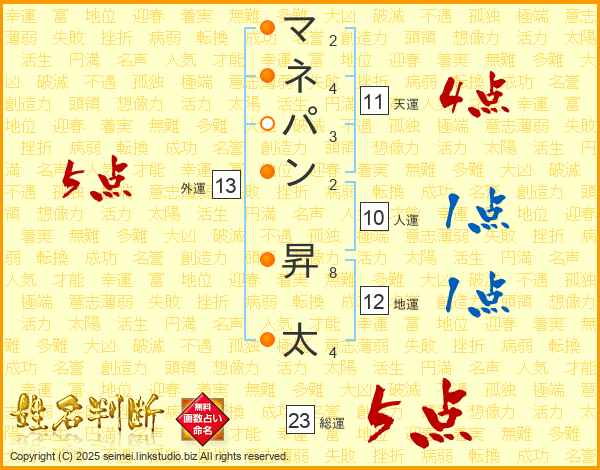 マネパン昇太さんの総運は23画の5点!