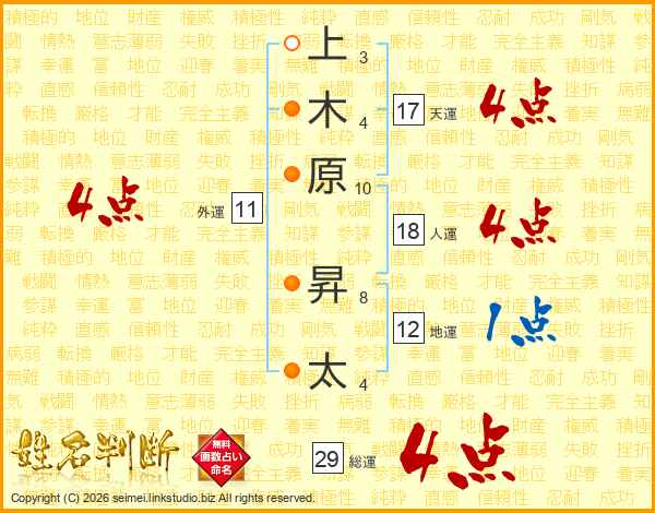 上(3画)木(4画)原(10画) 昇(8画)太(4画)