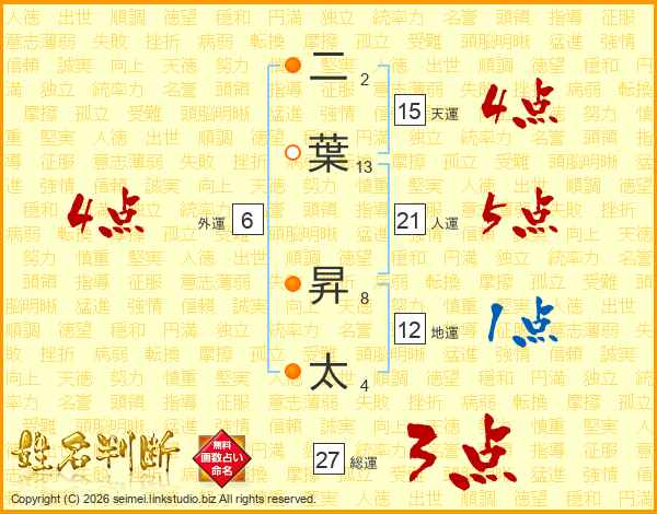 二葉昇太さんの天運は15画の4点!