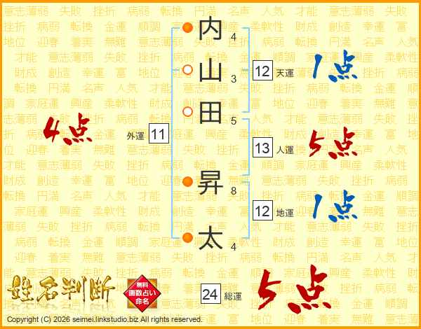 内山田昇太さんの総運は24画の5点!